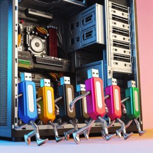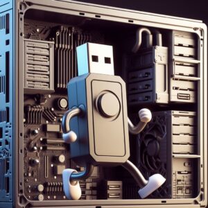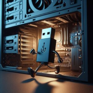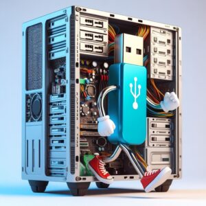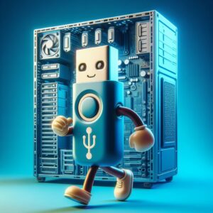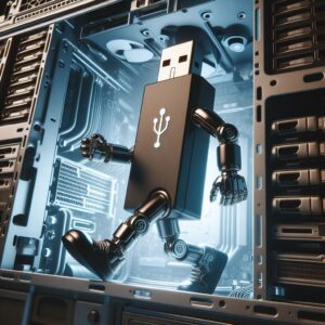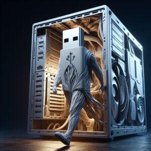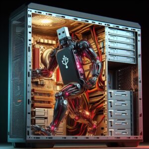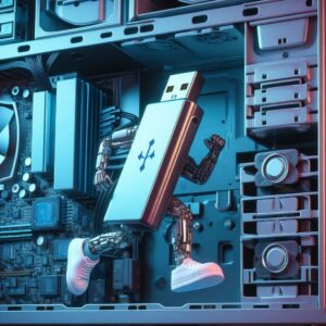 使用bing聊天,利用產生ai產生圖片jesse2023-11-29AI 使用一串文字: “一個USB隨身碟在一個大的PC主機內走路,主機內有不同的組件,顏色和形狀。” bing聊天會使用DALL.E 3畫出以下圖片 覺得很不錯。